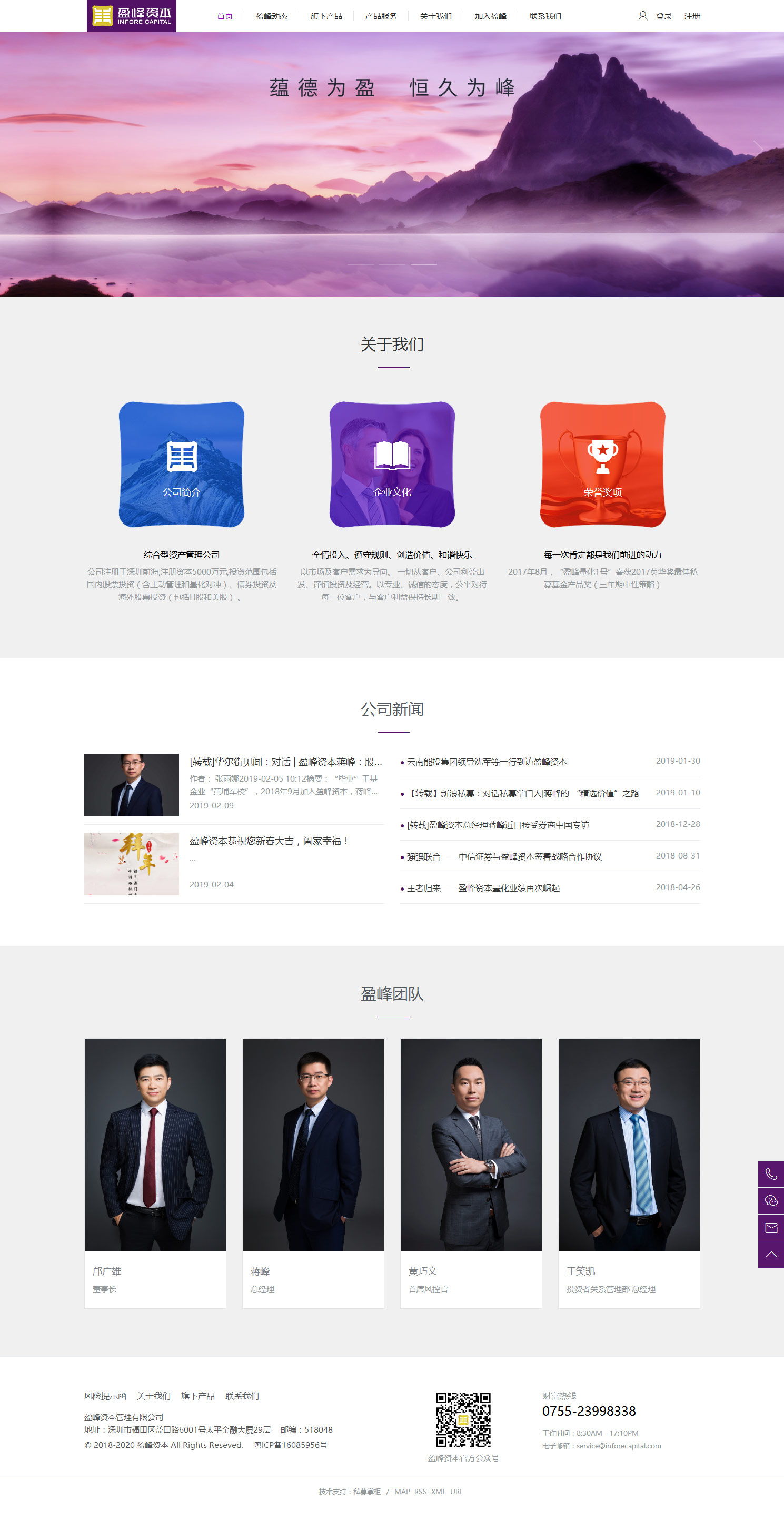 盈峰资本盈峰资本管理有限公司(“盈峰资本”)于2013年由盈峰投资控股集团旗下的深圳市合赢投资管理有限公司(”合赢投资“)与广东省盈峰创业投资管理有限公司(“盈峰创投”)合并而成,其前身合赢投资成立于2007年,是国内最早成立的私募资产管理机构之一。服务内容:官网建设、投资者服务系统搭建、合规运营系统、私募基金产品管理系统相关链接:www.inforecapital.com上一篇:懋峰资产下一篇:达仁资管返回列表帮助支持证监会就贯彻落实新“国九条” 推动新质生产力发展开展专题调研LP变更为香港居民,私募基金需要履行哪些变更手续?基金管理人失联后怎样私募基金备案反馈意见:占坑、备壳,期限错配,非市场化发债,未备案合伙企业私募管理人异常经营:全部五大类情形总结及关注要点私募股权管理人及基金接受保险资金投资有哪些合规性要求呢?私募基金当中的抽屉协议是否有效?私募投资基金约定的关键人条款解析私募基金管理人经营异常要点总结私募基金解析:合规风控负责人要求解析:搞懂股权、债权、实物不良资产的种类特征,妥妥滴!关于私募基金管理人备案,应从哪里开始?私募基金产品设计事项,你了解吗?解析,私募股权基金的瀑布式 收益模式私募基金双GP管理,你不知道的那些事。注意!私募基金管理人在重大事项上需注意哪些问题?×思纬网络资深顾问1对1专属咨询,高效梳理您的需求售前咨询热线400-829-2339顾问企业微信微信扫码添加微信客服电脑已登录微信,直接点击交谈或 微信扫码交谈(无需添加好友)顾问企业微信微信中长按二维码,识别并添加顾问非微信中,截图保存二维码,微信扫码添加顾问微信客服点击交谈