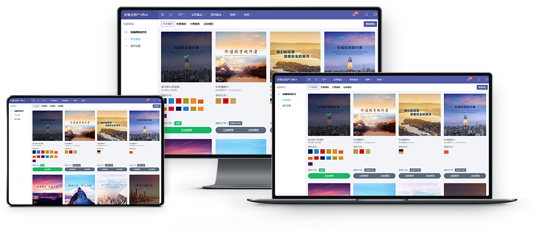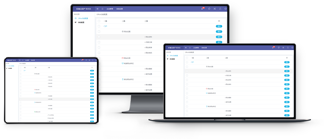 全网数据四合一桌面电脑网站、手机网站、公众号、小程序全部数据同步管理,同时支持数据和样式分离。