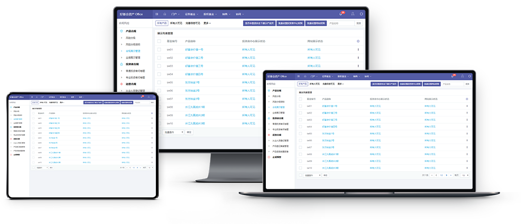 合规展示官网严格根据监管机构要求,全网合规展示,根据不同的人群实现合规展现,灵活的权限管理,达到企业形象宣传和营销的目的。