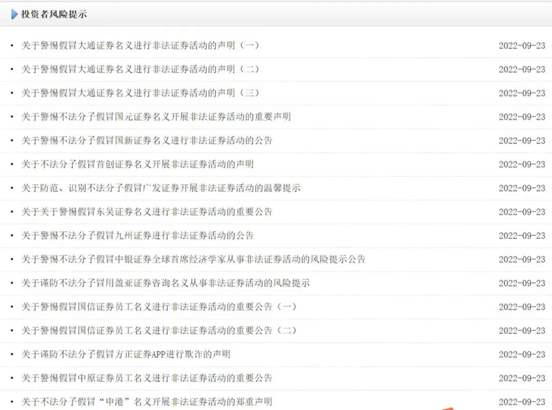 证券行业打假打非的投教活动是一个需要长期坚持的事项,非独证监会,各券商也在不断发布类似警示。近期,包括大通证券、中银证券等券商均在发布各类风险警示