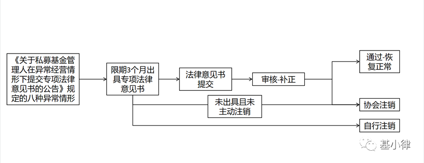 如下是中基协网站公示的异常经营机构恢复正常经营的流程图: